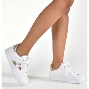 Sintetico, parte superior em napa/metalizado/metalizado. Na cor branco/dourado. Forro tecido poliester.