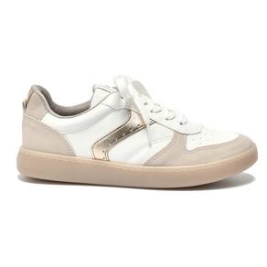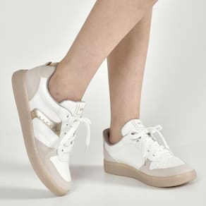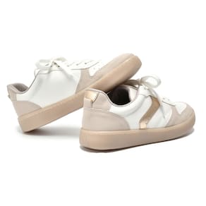 Sintetico, parte superior em nobuck/napa/metalizado. Na cor bege/branco/dourado. Forro tecido poliester. Solado sint.pvc cristal.