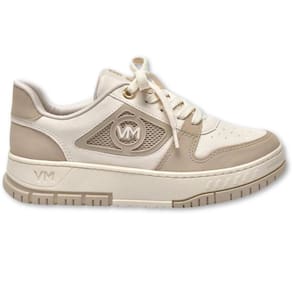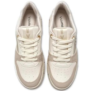Tênis Via Marte Casual Logo Lateral Feminino - Off White e Bege - 37 - Marrom Cacau