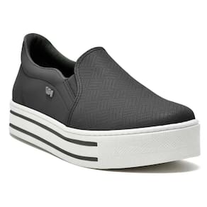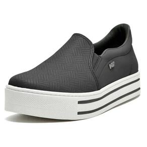 Tênis Feminino Casual Slip On Napa Preto Via Marte 23-8601-01 O Tênis Slip On Via Marte é confeccionado em napa de alta qualidade. Estilo slip on que facilita o calce, com elásticos no cabedal para melhor ajuste aos pés. Nessa temporada, o modelo vem na sola caixa mais alta, com 3,5 cm deixando ele ainda mais versátil no uso. Possui palmilha extra macia e forro em material têxtil, sendo muito confortável. Solado de borracha antiderrapante.
