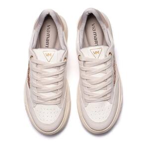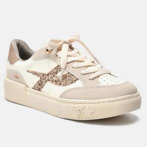 Sintetico, parte superior em nobuck/new floater/maxi glitter/nobuck metal. Na cor bege/branco/rouge.