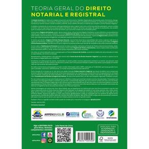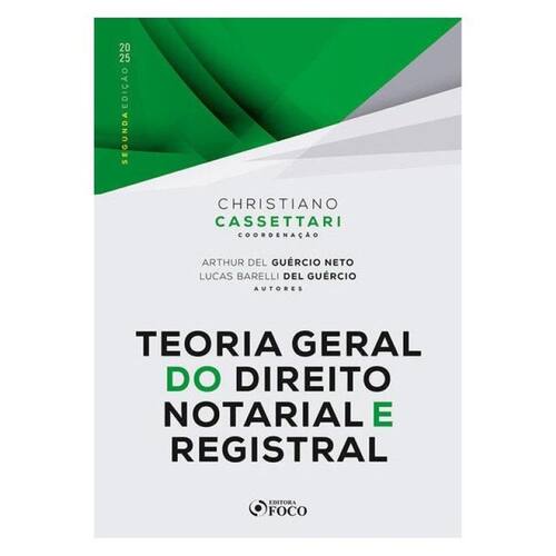 Teoria Geral do Direito Notarial e Registral - 2ª Ed - 2025 SOBRE A COLEÇÃO CARTÓRIOS Elaborada por especialistas renomados, aColeção Cartóriosexamina de maneira didática e profunda o direito notarial e registral em suas espécies, que dão origem aoscartórios extrajudiciais brasileiros. A coleção contempla a teoria geral do direito notarial e registral, o registro de imóveis, o registro civil de pessoa natural e jurídica, o registro de títulos e documentos e o tabelionado de notas e de protesto. Divididos por temas, cada um dos volumes traduz, em linguagem acessível, as especialidades cartorais, permitindo ao leitor compreender o dia a dia de um tabelionato ou do registro público sob o prisma da legislação e jurisprudência. As controvérsias são discutidas de forma analítica, conduzindo o leitor em direção à possíveis soluções, sempre abalizadas pela experiência dos autores no magistério e no cotidiano do direito notarial. Ao final de cada capítulo,questões de concursosauxiliam na fixação e na assimilação do conteúdo. Coordenador Christiano Cassettari Autores Arthur Del Guércio Neto Lucas Barelli Del Guércio
