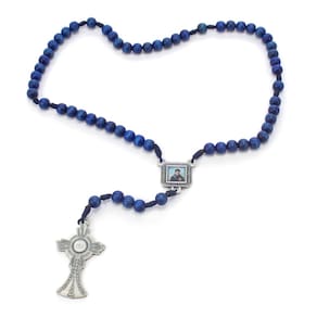 Material: contas em madeira azul 8 mm Metais em prata velha Resina Cordão Tamanho: 40 cm de comprimento Dimensões aproximadas do produto. Marca: Não Informado