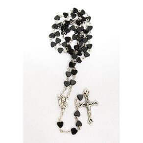 Este terço tem lindas contas de hematita em forma de coração cinza. A peça central apresenta Nossa Senhora do Monte Carmelo de um lado e o Sagrado Coração de Jesus no outro. É oxidado pela prata, assim como o crucifixo. Mede 42 cm do centro das contas até a ponta do crucifixo. Fabricado na Itália. Sagrado Coração de Jesus é uma devoção ao verdadeiro coração físico de Jesus como uma representação de seu amor divino pela humanidade. A devoção enfatiza o amor absoluto, a compaixão e a longanimidade do coração de Jesus pela humanidade. Marca: San Gregorio - Artigos Religiosos