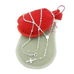 Terço Feminino 40/45cm Bolinha 2mm Banhado Prata GG156 Terço Feminino Volta 40/45cm 5Gr - Bolinha 2mm - Fecho Boia Beleza e Qualidade Sempre -Marca: Wnbijouterias -Pingente: 5cm -Tamanho Volta: 40/45cm -Modelo: Bolinha 2mm -Largura: 2mm -Modelo Fecho: Boia -Peso: 5Gr -SKU Vendedor: GG156Descrição Técnica: Corrente com banho super resistente. Processo de Folheação em varias camadas Prata Pura 1000 Não descasca, não perde a cor, qualidade garantida Grande tempo de durabilidade. Acompanha Saquinho Veludo porta Jóias. Todas as Fotos são Reais do ProdutoAcompanha: Certificado de garantia Garantia apenas para descascamento do banho da jóia Garantia não cobre defeitos de mau uso, aranhões ou quebra de partes da jóia.Contra Indicações: - Não usar creme, perfume, protetor solar e outros cosméticos por cima da jóia. - Evitar banho de mar Devido a oxidação da água Salgada - Evitar banho de piscina Devido a oxidação do Cloro e outros produtos Ean: 7896181270997