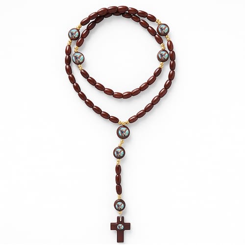 Terço Madeira São Miguel Arcanjo Conta 8mm 45 cm Marrom