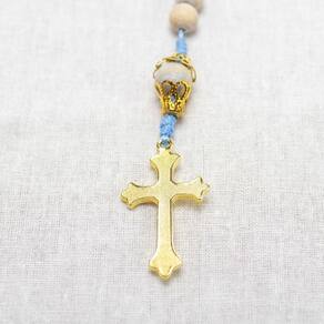 Material: contas em madeira branca e azul 8 mm Metais em dourado Resina Cordão Tamanho: 41 cm de comprimento Dimensões aproximadas do produto. Marca: Não Informado Ean: 7899347032828