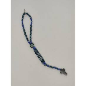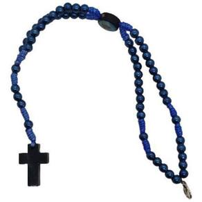 Terço pulseira N. Sra azul Terço Pulseira N. Sra. Azul - Terço. - Contas em plástico número 6. - Fio de nylon. - Com fecho em níquel, - Cruz e entremeio em madeira, - Acompanha: Terço e embalagem.