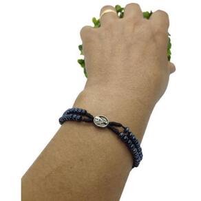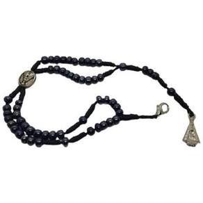 - Terço. - Contas em plástico número 8. - Medalhas em zamac na cor níquel e resinada. - Com fecho para por no pescoço no tom níquel. - Fio de nylon. - Contas em madeira número 6. - Com fecho em níquel. - Cruz e entremeio em madeira. - Hematita Nº 4. - Acompanha: Terço e embalagem.