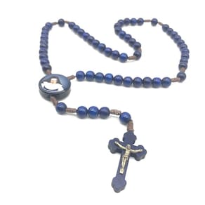 Terço Santa Irmã Dulce dos Pobres Madeira Azul 8 mm