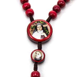 Terço Santa Terezinha Madeira 8mm Vermelho Santa Teresinha do Menino Jesus e da Sagrada Face, nascida em Alençon França , também é venerada e representada como a Santa das Rosas. Material: Madeira vermelha Contas 8 mm Metal em ouro velho Resina Cordão Tamanho: 41 cm de comprimento Dimensões aproximadas do produto. Marca: Não Informado Ean: 7899347274280