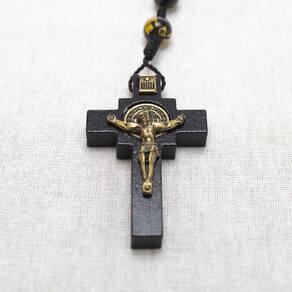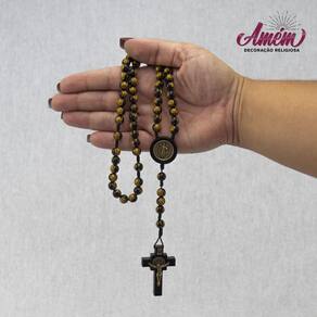 Material: madeira Contas em plástico 8 mm Preto Metais em Ouro Velho Resina Tamanho: 37 cm de comprimento Dimensões aproximadas do produto. Marca: Não Informado