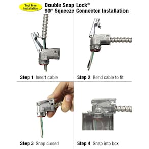 Sigma Engineered Solutions Proconnex 49816 AC/MC/Flex Quick Double Snap Lock Conector de aperto de 90 graus 1/2 polegada encaixe de conduíte, 1 pacote, prata