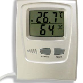- Peso: 85g, - Material: plástico ABS, - Comprimento do cabo: ± 2,40 m, - Pilhas: 1,5V - AAA, - Faixa de temperatura interna: 0°C à 50°C (32°F à 122°F), - Faixa de temperatura externa: -50° à +70°C (-58°F À 158°F), - Resolução: 0,1°C / °F, - Exatidão int/ext: ± 1°C de 0ºC a 50ºC, ± 2ºC para o restante da faixa. - Faixa da umidade: 15% à 95% UR, - Resolução: 1% UR, - Exatidão: ±5% UR,