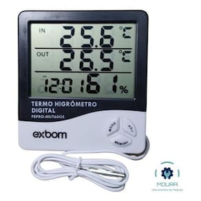 01 Termo-higrômetro digital com sensor externo 01 Pliha AAA 1,5v 01 Certificado de Calibração Rastreável RBC/Inmetro Enviado Digitalmente Marca: Não Informado