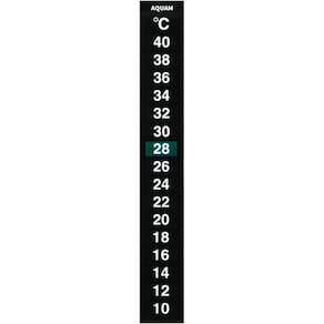 Como usar termômetro de tira no aquário O termômetro adesiva Aquam é um acessório importantíssimo ao aquário. Sua instalação é simples, rápida e de fácil leitura. Escolha um local na parte EXTERNA do aquário, abaixo do nível da água e na parte oposta ao seu aquecedor. Antes de fixá-lo no aquário, limpe o vidro na parte onde será fixado o termômetro. Retire o papel que cobre a cola na parte de trás do termômetro e fixe no vidro do aquário. Acompanhe a temperatura pelo número que se destacará com o cristal líquido presente no termômetro.
