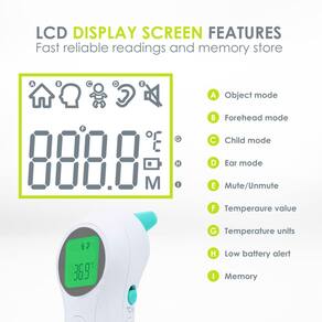 - Leituras e armazenamento de memória rápidas e confiáveis – Armazena memória automática de até 20 leituras de recordação de medições, ajudando você a rastrear a tendência da temperatura corporal. Aviso de febre audiovisual claro em uma tela LCD brilhante. Leituras rápidas e precisas ajudam a proporcionar paz de espírito quando seu ente querido está se sentindo mal.
