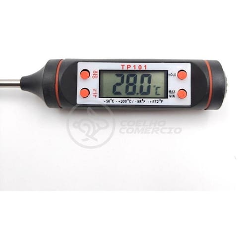 Termômetro digital para alimentos com desligamento automático. Mede a temperatura de alimento em graus célsius e fahrenheit com extrema precisão e rapidez. Perfeito para medir a temperatura de prato em banho maria no forno e outros. Seu display em LCD facilita a visualização das informações de modo claro e nítido junto de seu material de alta durabilidade e resistência que garante uma vida útil muito mais longa e durável para o produto.
