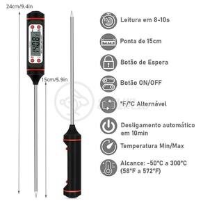 Termômetro Culinário Cozinha Digital Mede -50ºc A +300ºc