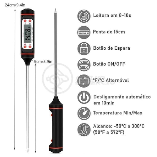 Termômetro Culinário Cozinha Digital Com Espeto Alimentos E Líquidos Mede -50c A +300c