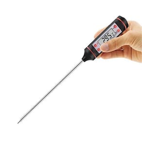 Mede a temperatura de alimento em graus célsius e fahrenheit com extrema precisão e rapidez. Perfeito para medir a temperatura de prato em banho maria no forno e outros. Seu display em LCD facilita a visualização das informações de modo claro e nítido junto de seu material de alta durabilidade e resistência que garante uma vida útil muito mais longa e durável para o produto.