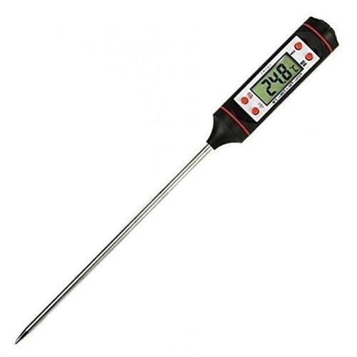 Mede a temperatura de alimento em graus célsius e fahrenheit com extrema precisão e rapidez. Perfeito para medir a temperatura de prato em banho maria no forno e outros. Seu display em LCD facilita a visualização das informações de modo claro e nítido junto de seu material de alta durabilidade e resistência que garante uma vida útil muito mais longa e durável para o produto.