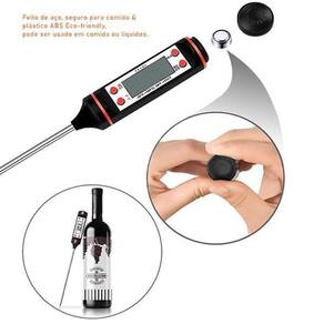 Mede a temperatura de alimento em graus célsius e fahrenheit com extrema precisão e rapidez. Perfeito para medir a temperatura de prato em banho maria no forno e outros. Seu display em LCD facilita a visualização das informações de modo claro e nítido junto de seu material de alta durabilidade e resistência que garante uma vida útil muito mais longa e durável para o produto.