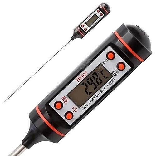 Mede a temperatura de alimento em graus célsius e fahrenheit com extrema precisão e rapidez. Perfeito para medir a temperatura de prato em banho maria no forno e outros. Seu display em LCD facilita a visualização das informações de modo claro e nítido junto de seu material de alta durabilidade e resistência que garante uma vida útil muito mais longa e durável para o produto.