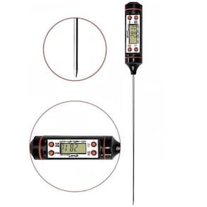 Termômetro Culinário Digital Cozinha Alimentos e Bebidas Especificações: Termômetro Culinário Digital Espeto Alimentos Cozinha Tp101 - Mede de -50ºC a +300ºC - Escala: 0,1 ºC - Bateria 1,5V AG13 Inclusa - Peso: 75g - Tamanho: 22,5cm - Modo de economia de energia: desliga automaticamente após 10 minutos sem uso. Principais botões: - Ligar/desligar, centígrados/Fahrenheit e Função Hold Fixa última medição - Memória da última medição - Desligamento automático para economia de energia Instruções 1- Pressione o Botão Hold para fixar a temperatura quando estiver medindo e pressione novamente para iniciar uma nova medição. 2 - Pressione ºC e ºF para selecionar a escala que deseja utilizar. 3 - On/Off - Liga e desliga o aparelho 4 - Max/Min. Mostra a maior e a menor temperatura medida. Conteúdo: 1 - Termômetro Culinário Digital Espeto Alimentos CozinhaMochila Trilha Camping 90l Litros Impermeável DL0002 Grande