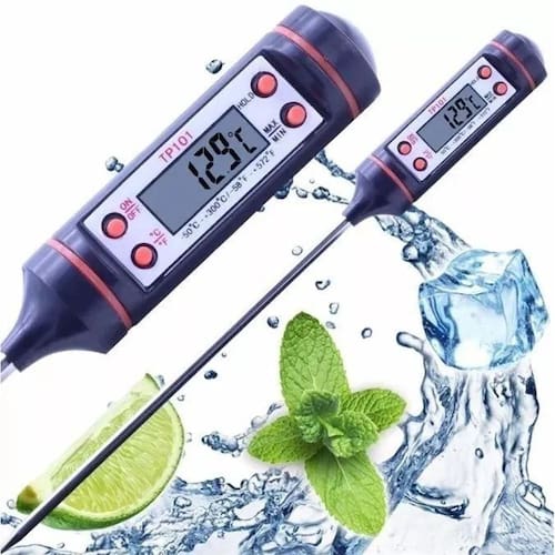 Termômetro culinário digital espeto alimento cozinha tp101 Especificações:termômetro culinário digital espeto- tamanho: 22,5cm- tamanho do espeto metálico: 15cm- bateria 1,5v ag13 inclusa - mede de -50ºc a +300ºc- escala: 0,1 ºc- peso: 75g- modo de economia de energia: desliga automaticamente após 10 minutos sem uso.Principais botões:- ligar/desligar, centígrados/fahrenheit e função hold fixa última medição - memória da última mediçãoinstruções- on/off - liga e desliga o aparelho- pressione ºc e ºf para selecionar a escala que deseja utilizar.- max/min. Mostra a maior e a menor temperatura medida.- pressione o botão hold para fixar a temperatura quando estiver medindo e pressione novamente para iniciar uma nova medição.- desligamento automático para economia de energia Marca: Shopbr
