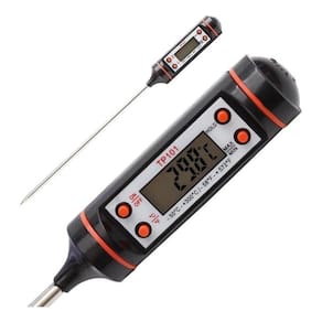 Termômetro culinário digital espeto alimento cozinha tp101 Especificações:termômetro culinário digital espeto- tamanho: 22,5cm- tamanho do espeto metálico: 15cm- bateria 1,5v ag13 inclusa - mede de -50ºc a +300ºc- escala: 0,1 ºc- peso: 75g- modo de economia de energia: desliga automaticamente após 10 minutos sem uso.Principais botões:- ligar/desligar, centígrados/fahrenheit e função hold fixa última medição - memória da última mediçãoinstruções- on/off - liga e desliga o aparelho- pressione ºc e ºf para selecionar a escala que deseja utilizar.- max/min. Mostra a maior e a menor temperatura medida.- pressione o botão hold para fixar a temperatura quando estiver medindo e pressione novamente para iniciar uma nova medição.- desligamento automático para economia de energia Marca: Shopbr