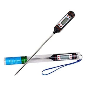 Termometro doméstico Utilização alimentícia em Cozinha. Termometro Digital com baixo consumo de energia, alta estabilidade, de alta precisão. Fácil de usar, basta inserir no alimento e pressionar o botão para obter uma leitura precisa. O termômetro pode garantir que sua receita seja feita com absoluto controle de temperatura. Todo mundo deveria ter um em casa 1. Faixa De Medição: -50 C a + 300 C 58 C-+ 572 F 2. C e mostrador opcional F 3. Identificador de bateria fraca e exibição 4. Memória de picos de temperatura 5. Após 15 minutos desliga automaticamente economia de energia opcional 6. Material: Metal 7. Dimensão: 23 cm 8. Serve para alimentos sólidos e líquidos 9. Acompanha case em acrílico. Marca: Mc1