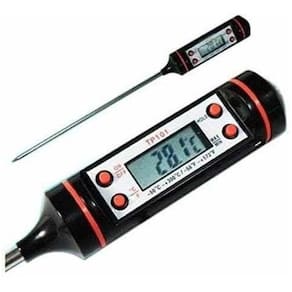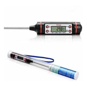 Termômetro Culinário Digital Para Alimentos Cozinha Bebidas Termômetro digital para alimentos com desligamento automático. Mede a temperatura de alimento em graus célsius e fahrenheit com extrema precisão e rapidez. Perfeito para medir a temperatura de prato em banho maria no forno e outros. Seu display em LCD facilita a visualização das informações de modo claro e nítido junto de seu material de alta durabilidade e resistência que garante uma vida útil muito mais longa e durável para o produto.Especificações técnicas:- Mede de -50ºC a +300ºC- Escala: 0,1 ºC- Bateria 1,5V AG13- Peso: 75g- Tamanho: 22,5cm- Modo de economia de energia: desliga automaticamente após 10 minutos sem uso.- Ligar/desligar, centígrados/Fahrenheit e Função Hold Fixa última medição - Memória da última medição- Desligamento automático para economia de energiaInstruções:- 1. Pressione o Botão Hold para fixar a temperatura quando estiver medindo e pressione novamente para iniciar uma nova medição.- 2. Pressione ºC e ºF para selecionar a escala que deseja utilizar.- 3. On/off - Liga e desliga o aparelho.- 4. Max/min. Mostra a maior e a menor temperatura medida.Itens Inclusos:- 1 Termômetro Culinário Digital Espeto Alimentos Cozinha- 1 Manual de Instruções Marca: Shopbr