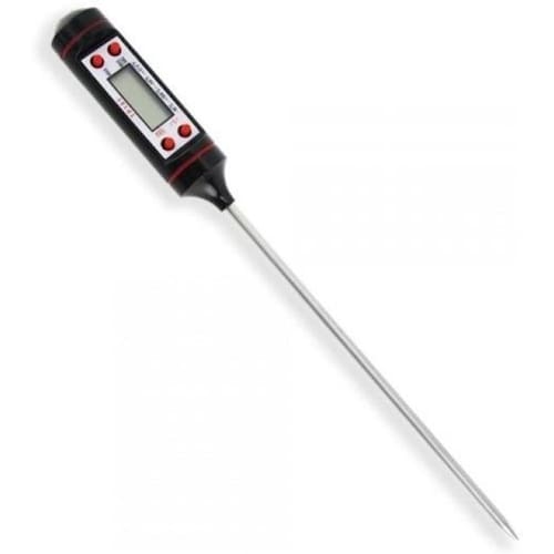 Termômetro Culinário Digital Plástico Inox Espeto Termômetro Culinário Digital Plástico Inox EspetoNa hora do cozimento, o termômetro culinário é o acessório indispensável que evitará que seus alimentos fiquem crus. Sua utilização garantirá que a temperatura interna e cozimento ideal do alimento seja atingida.- Termômetro com alta precisão - Alta qualidade e durabilidade- Validade indeterminadaCaracterísticas: - Botão ON/OFF- Botão para medição em graus C ou F- Memória da última medida- Faixa de temperatura -50 a 300C / -58 a 572F Bateria inclusa 1 x 1,5 V Material: Plástico / Aço InoxEmbalagem contém: 01 termômetro com bateria inclusa01 capa plástica para armazenamento e proteção Marca: Shopbr