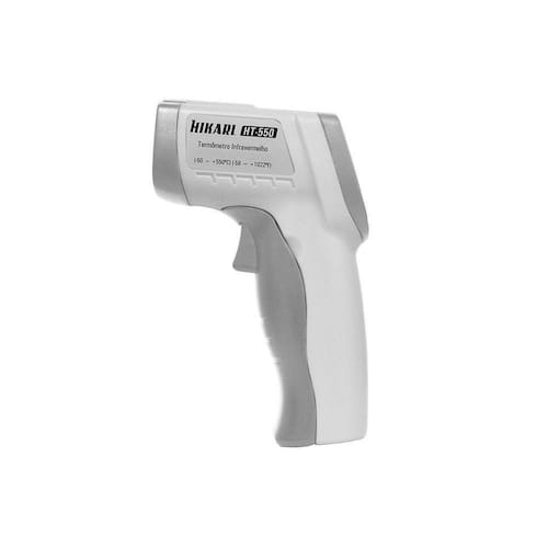 Termômetro Digital -50~550ºc Hikari Ht-550 O termômetro infravermelho modelo ht-550 se destaca por ser capaz de realizar leituras de temperatura sem contato. Sua a laser facilita a leitura durante a operação. Como característica adicional apresenta as funções: seleção de temperatura °c/°f, seleção de emissividade, max/avg/min, diff, lal, hal, offset, data hold, iluminação do display e indicador de bateria fraca. O termômetro infravermelho ht-550 pode ser para medir a temperatura da superfície de objetos onde a medição convencional por contato não é possível. Sistema de medição: infravermelho Display lcd: 3 ½ / 1999 Iluminação do display: sim Faixas de medição infravermelho : 50~550ºc / -58~1022ºf Resolução: 0.1ºc / 0.1ºf Data hold: sim Máx / avg / mín: sim Diff / offset: sim Alarmes para limite de temperatura: sim Auto desligamento: sim Resposta espectral: 8~14µm Tempo de resposta: 0,5 segundos laser: sim Emissividade: ajustável de 0.1 ~ 1.0 Campo de visão: 12:1 Precisão básica: 1.5% Classificação do laser: classe ii Dimensões: 155x43x106mm Peso: 180g Alimentação: bateria 9v : 12 meses Obs: Não faz medição corporal