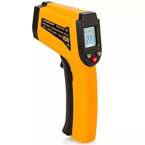 Descrição: O termômetro infravermelho digital para o GM-400 oferece máxima confiança e precisão. ideal para medições precisas sem contato. evita acidentes, possibilitando a medição de temperatura sem contato, além de ser muito fácil de usar, basta apertar o gatilho. possibilita visualização instantânea da temperatura medida no display de cristal líquido. Características do Produto: Tipo: termometro Digital Unidade de temperatura: °F e °C Faixa de Temperatura: -50 a 400ºC -58 a 752ºF Precisão: -50 a 0 ºC +/- 2 ºC - 0 a 380 ºC +/- 1,5ºC Distância razão do ponto: 12: 1 Material utilizado na Fabricação: Plástico, Sensor, Circuito Eletrôinico e Cristal Líquido. Disponível na Cor: Preto com Laranja. Conteúdo da Embalagem: 1 termometro Digital com InfraVermelho GM400 2 Pilhas AAA inclusas . COM