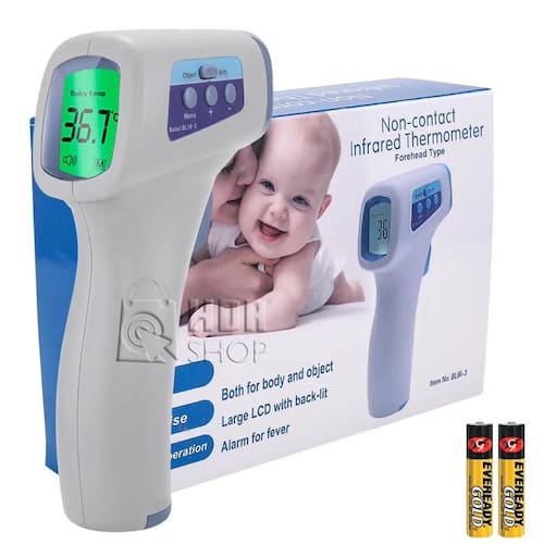 Termômetro Digital Infravermelho Medidor Corporal e Objetos Display de Led - O Termômetro Digital Medidor de Temperatura é um produto multifunção Corporal, Alimentos e Objetos e que pode ser tanto em ambientes profissionais, assim como em residências. A tecnologia de infravermelho possibilita medições de temperaturas em quaisquer partes do corpo, inclusive na testa. - O produto é muito seguro e possui uma estrutura feita em material de alta resistência. Ter o termômetro é uma boa forma de garantir saúde e segurança para a nossa família e amigos. - Ideal para medir a temperatura de bebês, crianças e idosos. Este termômetro é super moderno e fácil de utilizar, não incomodando a criança como acontece com os antigos termômetros. Seu filho não vai se incomodar quando você tiver que mensurar a temperatura dele, porque este termômetro é digital e infravermelho, bastando apontar na testa ou no ouvido, a uma distância entre 5 a 15 cm,em aproximadamente cinco segundos a mensuração da temperatura aparecerá com precisão no visor. - Ele também possui a função de medir temperatura de objetos e alimentos com alta precisão Complemento de Informações Modelo: BLIR-3 Com marca Babyly Método de medição: sem contato Faixa: corpo humano 35,5 ° C - 42,9 ° C Faixa: objeto 0 ° C - 118 ° C Exato: corpo humano 0,2 ° C , objeto 1,0 ° C Resolução: 0,1 ° C Condição de trabalho: 10 ° C - 40 ° C Condição de armazenamento: -25 ° C - 55 ° C Fonte de alimentação: Bateria alcalina DC 3V 2 AA Indicador de nível de energia: quando desligado 10uW Memória: recuperação automática da última medição Visor: tela LCD com luz de fundo Escala de leitura: célsius ou Fahrenheit Desligamento automático: dentro de 30 segundos Observe: Acompanha 2 Pilhas AA Homologação Anvisa: 10410610036 Marca: Não Informado Ean: 6921875709901