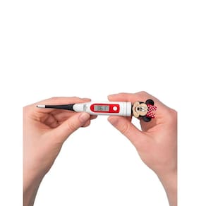- Resultados Rápidos: Obtenha a temperatura em apenas 1 minuto, proporcionando uma medição eficiente; - Memória Integrada: Armazena a última medição para facilitar o acompanhamento da temperatura; - Desligamento Automático: Economize energia, pois o termômetro se desliga automaticamente após o uso; - Ponta Flexível: Segurança acima de tudo, a ponta flexível garante conforto para o seu bebê ou criança; - Design Encantador: A Minnie traz um toque de diversão ao processo, transformando a medição em um momento alegre.