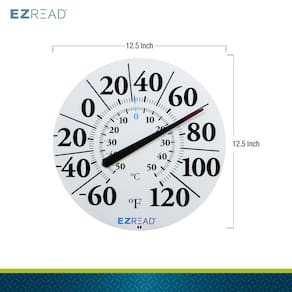 EZREAD Termômetro com mostrador suspenso 840-1210, termômetros climáticos para uso interno e externo, diâmetro grande de 31 cm, números fáceis de ler, branco básico