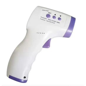 Termômetro Infravermelho Sem Contato Testa Criança Adulto. Este termômetro é super moderno e fácil de utilizar, sendo indicado para medir a temperatura corporal sem contato com pele. Não incomodando a criança ou adulto como acontece com os antigos termômetros. Basta apontar na testa, antebraço ou pescoço a uma distância entre 5 a 15 cm e acionar o gatilho até escutar um bip aproximadamente 1 segundo logo a mensuração da temperatura aparecerá com precisão no display LCD retro iluminado.