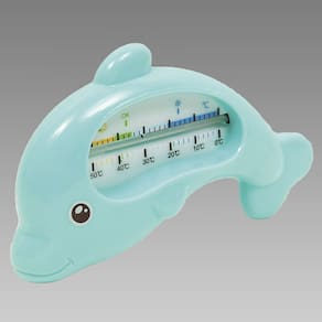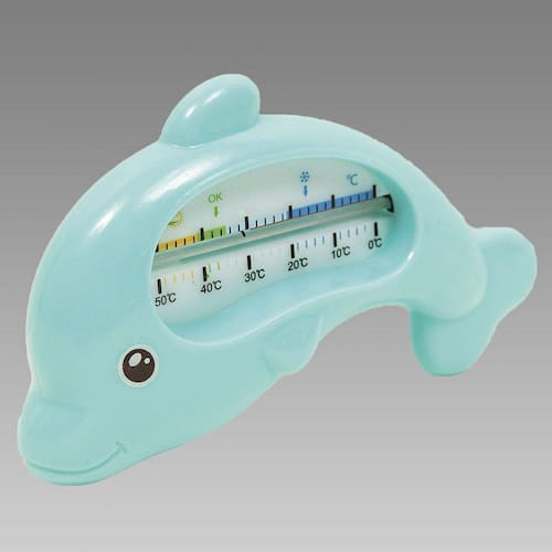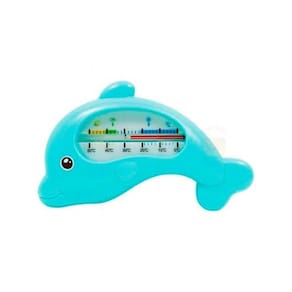 Em formato divertido de golfinho, o termômetro flutua na água para divertir o bebê.