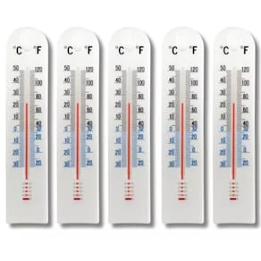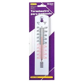 Termometro de alta qualidade na cor branca, feito com plástico, querosene e vidro.
