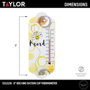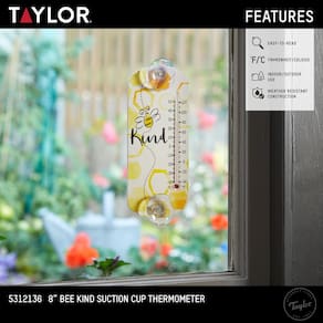 Taylor Bee Kind Termômetro com ventosa interna e externa, decoração para pátio, piscina ou garagem, 20 cm, multi
