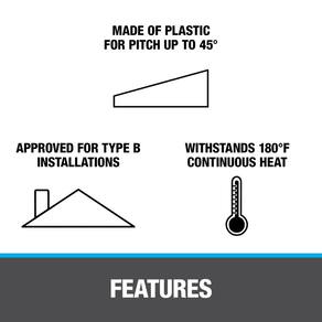 oatey 11890 3 " termoplástico teto flashingoatey 11890 3 " termoplástico teto piscando características: não desbota e não racha rígido termoplástico base desliza sobre tubo para 45â ° de inclinação não vedação gola não para Hot subjulgados ou acumulados telhados aprovada para instalações de tipo B 18 " x 18 " bases para código necessário áreas tamanho: 3 " não use produtos de petróleo em bases de plástico ou coleiras de borracha. nominal 180â ° F contínuo calor.
