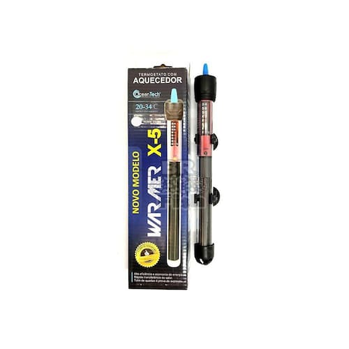 Aquecedor com termostato ocean tech warmer x-5 - 200w - 220vO aquecedor com termostato warmer x-5 é um equipamento de extrema importância no aquarismo. Além de aquecer a água do aquário ele mantém a mesma com uma temperatura equilibrada, garantindo assim o bem estar dos peixes e animais do tanque. Por isso seu uso não deve ser apenas no inverno, mas sim durante o ano inteiro.Aquecedor com termostato ocean tech warmer x-5. Selado e totalmente submersível, confiável e com desempenho excepcional.Temperatura regulável de 18c a 34c e com sistema anti explosão. Acompanha ventosas para fixação.Modo de usar: regular a temperatura desejada através do seletor localizado no cabeçote do produto, colocar o equipamento dentro da água e liga-lo na tomada. Nunca ligar o aparelho fora da água.EspecificaçõesPotência : 200wVoltagem 220v