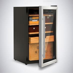 Equipado com um compressor que utiliza gás ecológico, preservando o meio ambiente ao mesmo tempo em que mantém a temperatura ideal para a conservação dos charutos.