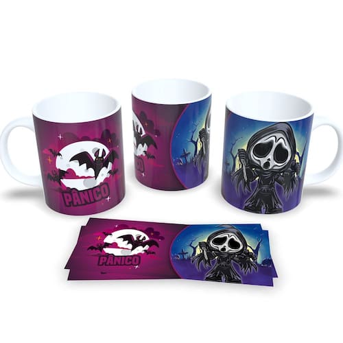 Caneca de porcelana de alto brilho, com alça e interior branca Coleção Terror.
