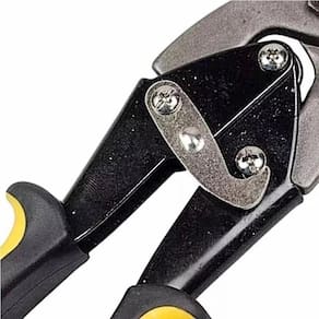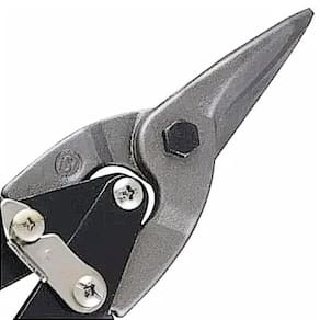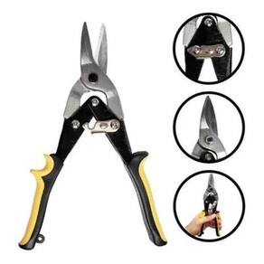 Tesoura Alicate para cortar chapa reto 250mm Tesoura tipo Aviação Corte Reto Mecanismo de alavanca dupla permite alcançar forca de corte máxima ao aplicar esforço mínimo. Dureza das bordas da lamina e 56 HRc. Entalhos especiais nas bordas da lamina impedem deslizamento de material em processamento. Tem injeção dupla anatômica confortável. Usada para cortar chapa de metal. Características: Cabo dois componentes; Corte reto em chapas de até 1,0 mm de espessura; Informações Técnicas: Tesoura de: 10 250mm Marca: Quickstore