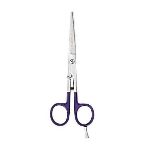 Linha Professional Silver. Aço inoxidável, Lâminas afiadas com precisão de corte, Lâminas com ajuste de fábrica, Cabos retos com design tradicional, Cabo diferenciado com acabamento na cor roxa, Descanso de dedo removível, Embalagem: Pouch.