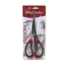 Tesoura culinária de metal com cabo plástico Cor: vermelho Tesoura com lâmina em aço inox para um desempenho de corte excepcional e duradoura, ainda possui cabo soft em plástico para um maior conforto evitando acidentes, e capa plástica protetora para as lâminas. As tesouras servem perfeitamente para destro ou canhoto. Lâminas altamente resistente à ferrugem e corrosão, de alta qualidade, precisas, afiadas e cuidadosamente ajustadas.